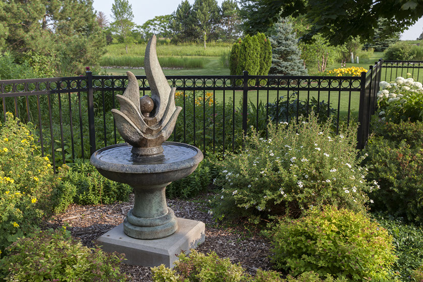 Accents in the landscape help draw your eye to a particular object or area. Highlight accents such as outdoor art, a unique plant, or a water feature with outdoor lighting to showcase them during the evening hours.