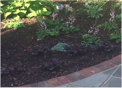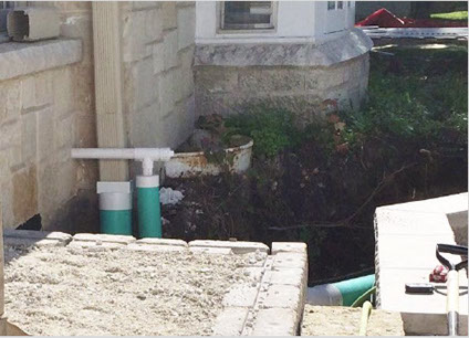 An extensive storm water system connecting down spouts and drains underlies the lawn and patio areas. Smooth-walled Schedule 35 PVC drain tile prevents clogging from leaves and tree debris, with slip fittings on downspouts, providing easy access for cleaning if needed.