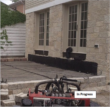 Waterproofing Mastic coating was applied to the block wall to help prevent water from seeping through the foundation.