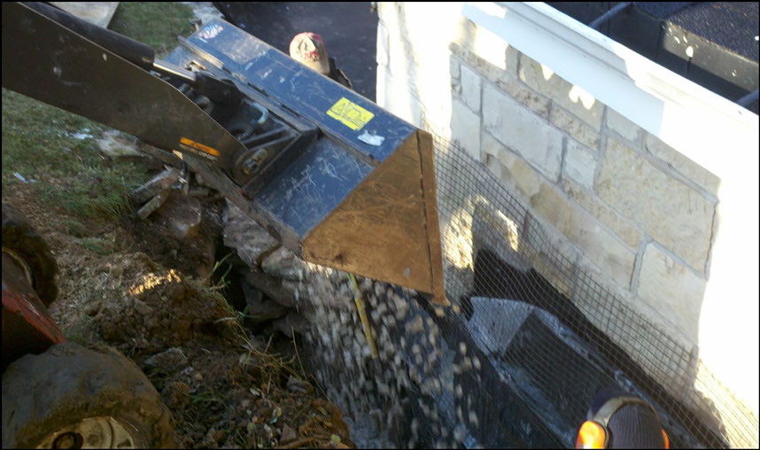 Photo 11: Backfilling with gravel to provide drainage and reduce weight against the exterior wall.