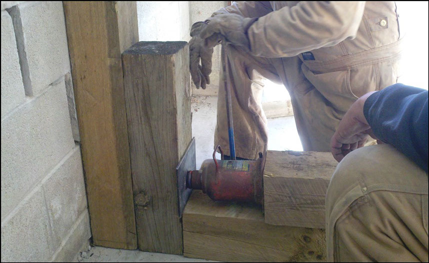 Photo 5: Wall is hydraulically jacked back to the original position.