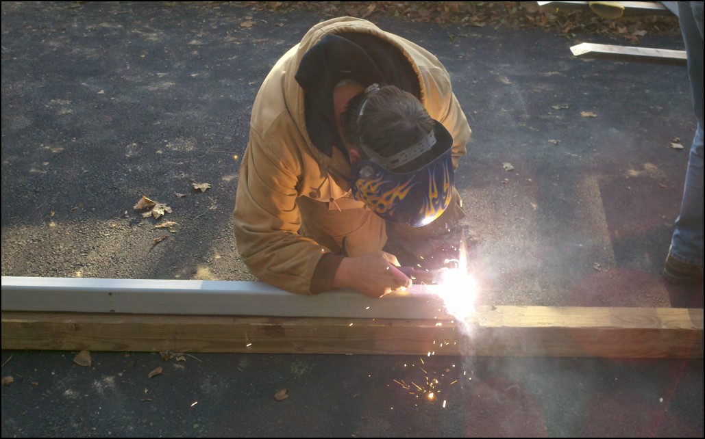 Photo 7: Structural steel beams were installed. Joints were tuck pointed. The beams were tied through the wall and attached into structural Geogrid into the exterior gravel fill.
