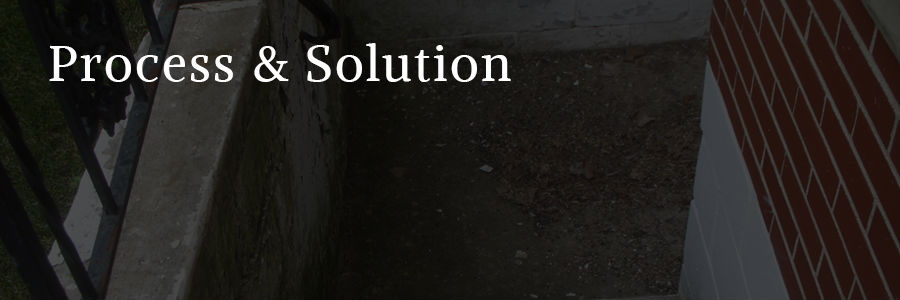 Problem: Water would come into the finished basement area at the floor level during heavy rainstorms. The stairwell would flood and the well wall was cracked and buckling.